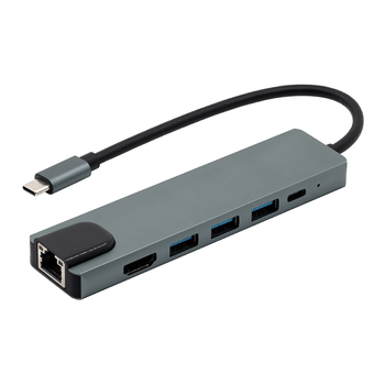 6 in 1 USB3.0 Type-C Hub 4K HDTV 100Mbps Ethernet PD Power Delivery Charger Video USB C Docking Station for Laptop